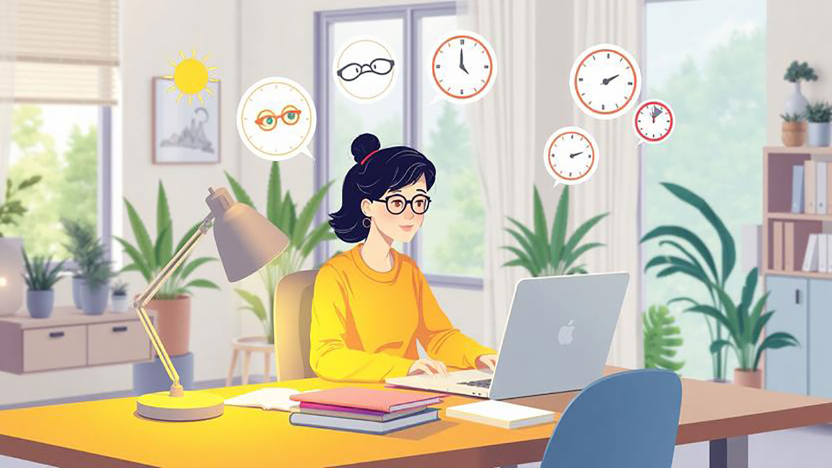 Selain mengatur pencahayaan, penting juga untuk memberi waktu istirahat pada mata. Gunakan aturan 20-20-20, yaitu setiap 20 menit melihat layar, alihkan pandangan ke objek sejauh 20 kaki selama 20 detik.