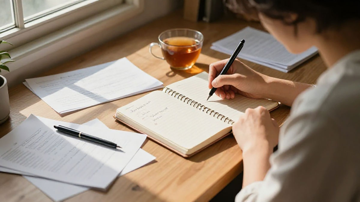 Pilih waktu tertentu setiap hari, misalnya pagi atau malam sebelum tidur, selama 10–20 menit. - Tulis semua yang ada di pikiran