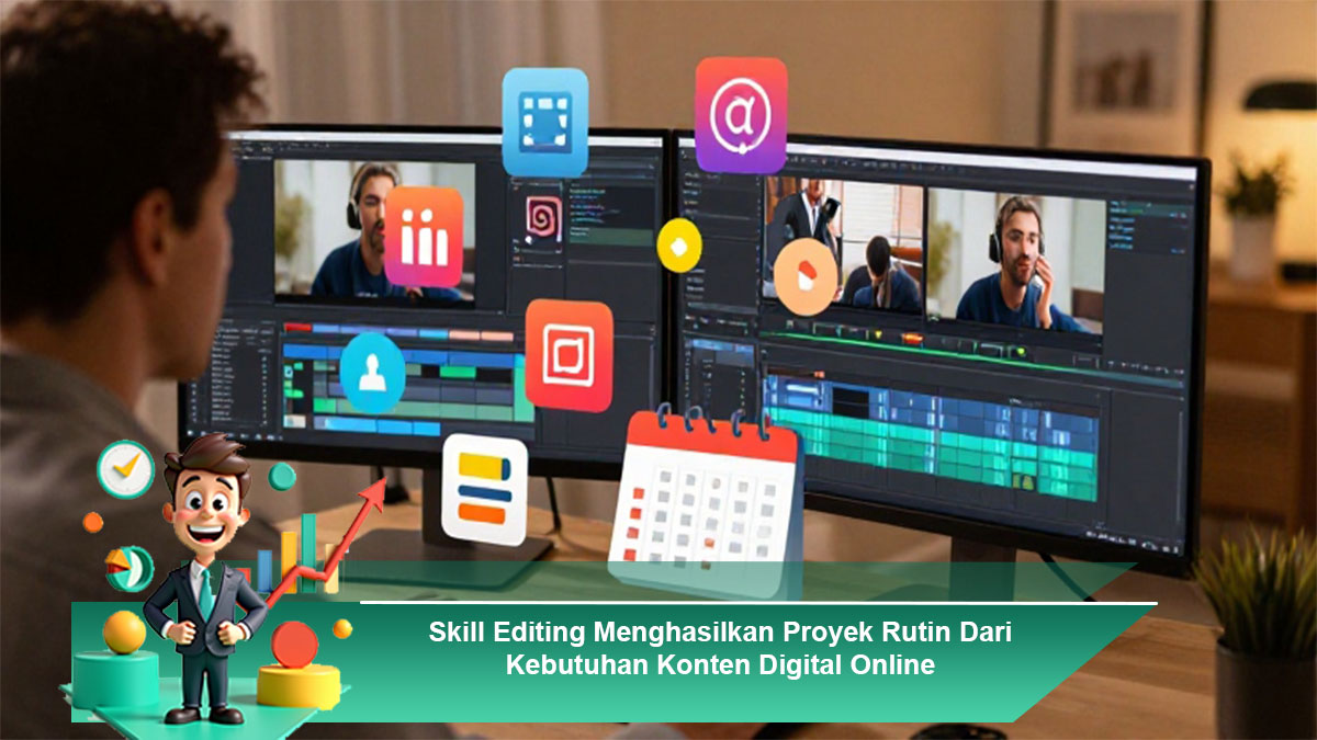Skill editing menghasilkan proyek rutin dari kebutuhan konten digital online karena permintaan konten terus meningkat setiap hari. Dengan portofolio yang rapi, positioning yang jelas, komunikasi yang baik, serta kemampuan menjaga kualitas, seorang editor bisa membangun penghasilan rutin dari klien digital. Editing bukan sekadar keterampilan teknis, tetapi juga kemampuan menciptakan konten yang menarik dan efektif. Jika dikelola dengan serius, skill editing bisa menjadi jalur income jangka panjang yang stabil dan semakin berkembang.